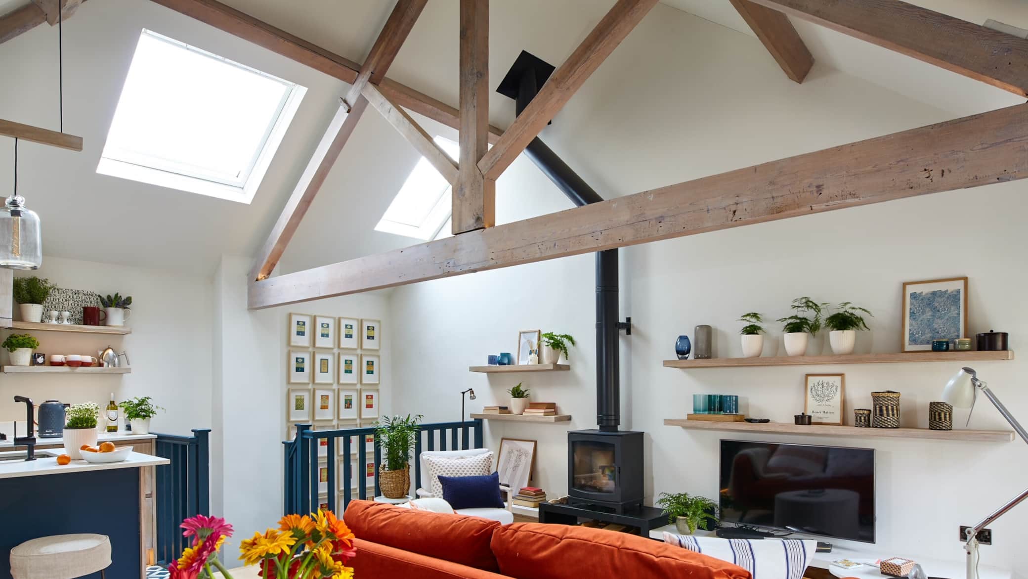 Light pours into the upstairs living space, with peaceful garden views that make slow mornings feel indulgent. Stretch out on the sofa with a book, share long, easy conversations, or curl up by the log burner after a day in the city. Downstairs, the serene king-size bedroom offers a deeply restful night’s sleep.